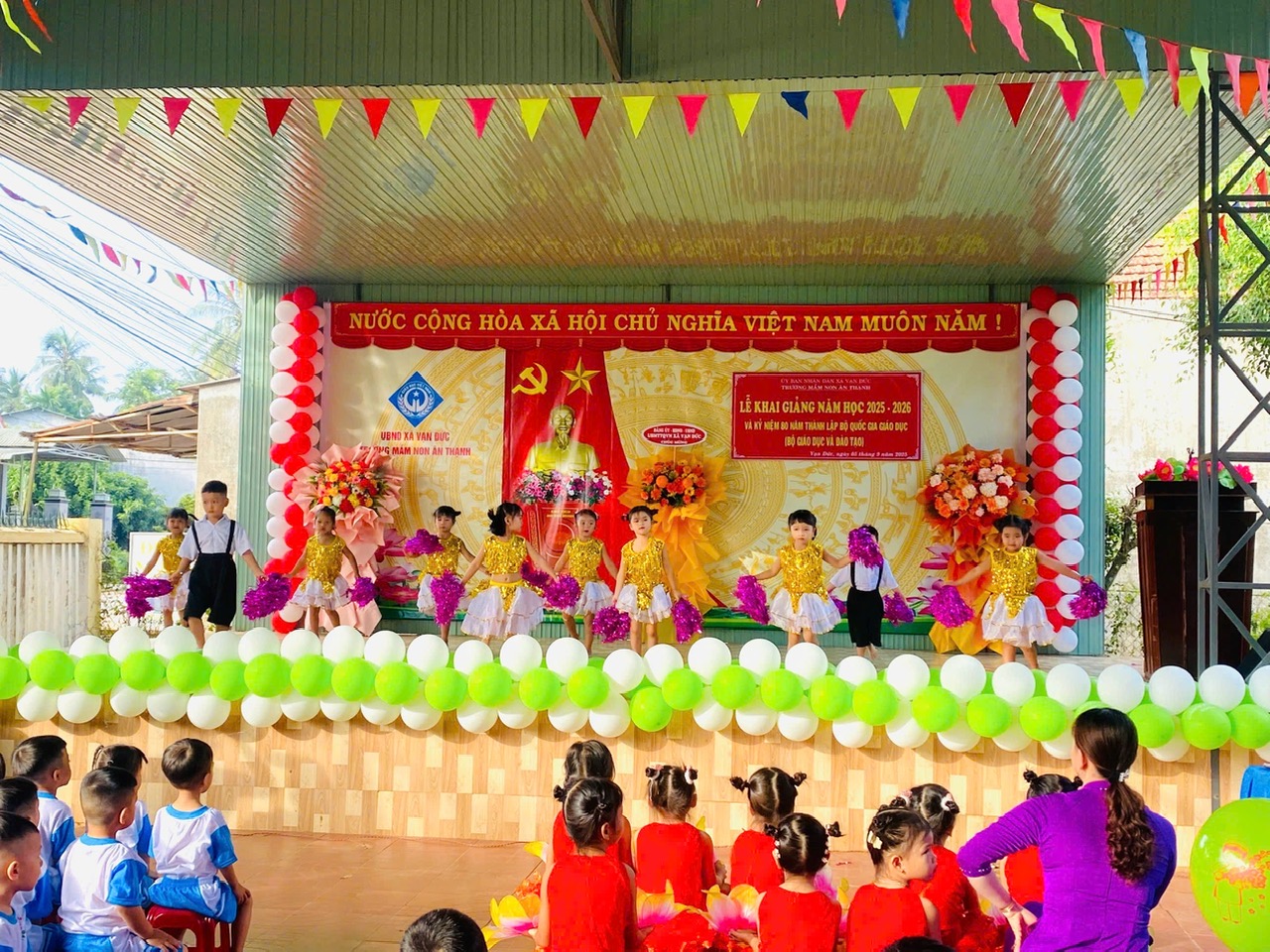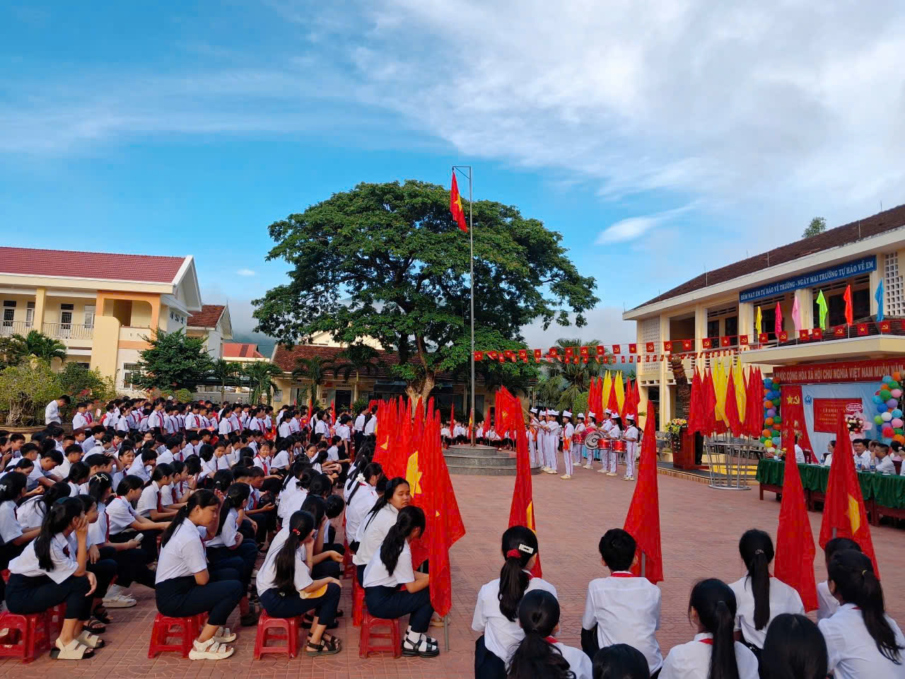 Tiếp theo đó, từ 8 giờ đến 9 giờ 30 phút: Toàn bộ học sinh, giáo viên và đại biểu tại các trường sẽ dự Lễ khai giảng năm học 2025-2026 gắn với Lễ kỷ niệm 80 năm thành lập Bộ Quốc gia Giáo dục, được kết nối trực tuyến từ đầu cầu Hà Nội. đây là lần đầu tiên học sinh, giáo viên và phụ huynh trê địa bàn xã được dự Lễ Khai giảng chung trong toàn quốc; được lắng nghe ý kiến chỉ đạo, tình cảm của đồng chí Tổng Bí thư Tô Lâm dành cho ngành Giáo dục - Đào tạo.