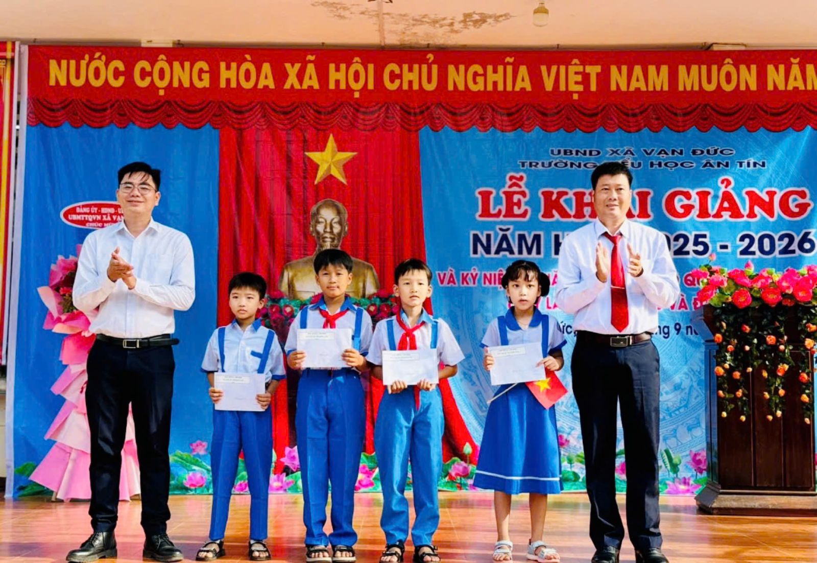 Trong lễ khai giảng tại các trường trên địa bàn xã Vạn Đức năm nay có sự hiện diện đông đủ của lãnh đạo xã, đại diện các ban ngành, đoàn thể cùng đông đảo phụ huynh. Sự có mặt ấy không chỉ mang ý nghĩa nghi thức, mà còn là nguồn động viên lớn lao cho thầy và trò trong năm học mới này. Trong lễ khai giảng đã có hàng chục suất học bổng, phần quà thiết thực đã được trao tận tay học sinh nghèo vượt khó; trong đó Hội LHPN xã Vạn Đức đã trao 10 suất quà, mỗi suất trị giá 300.000 đồng cho các cháu thiếu nhi có hoàn cảnh khó khăn tại trường Mần non Ân Tín và trường Mầm non Ân Thạnh.