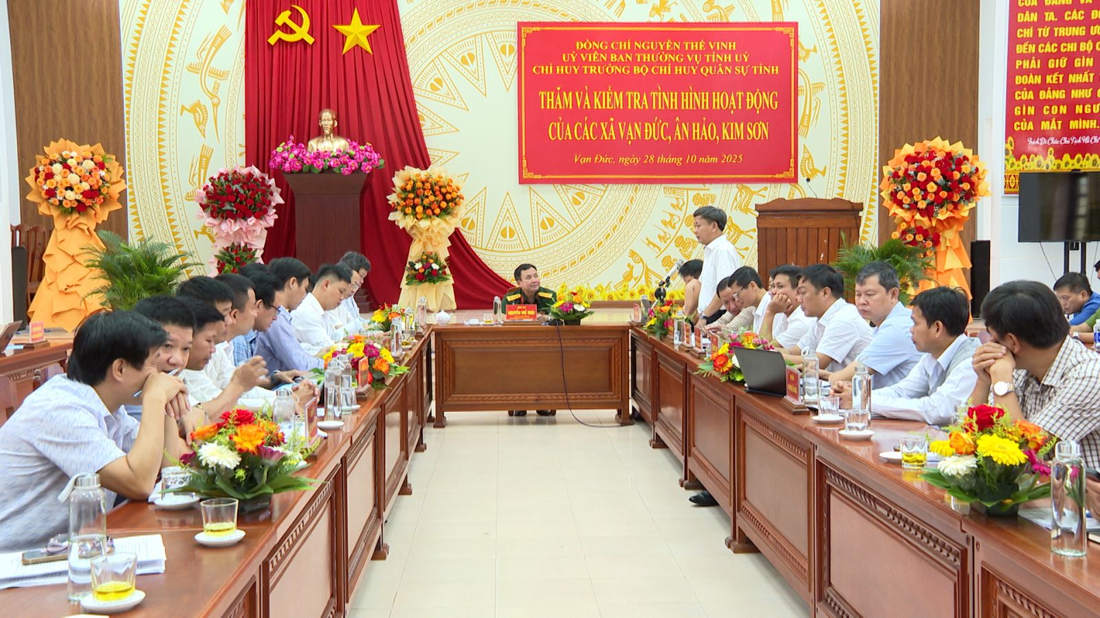 Qua thảo luận của các đại biểu và các ngành chuyên môn của tỉnh, Phát biểu tại buổi làm việc, Đồng chí Nguyễn Thế Vinh - Ủy viên Ban Thường vụ Tỉnh ủy, Chỉ huy trưởng, Bộ Chỉ huy Quân sự tỉnh ghi nhận và biểu dương tinh thần đoàn kết, nỗ lực của cấp ủy, chính quyền, lực lượng dân quân trong thực hiện nhiệm vụ kép – vừa phát triển kinh tế, vừa giữ vững ổn định chính trị, trật tự an toàn xã hội trên địa bàn.
